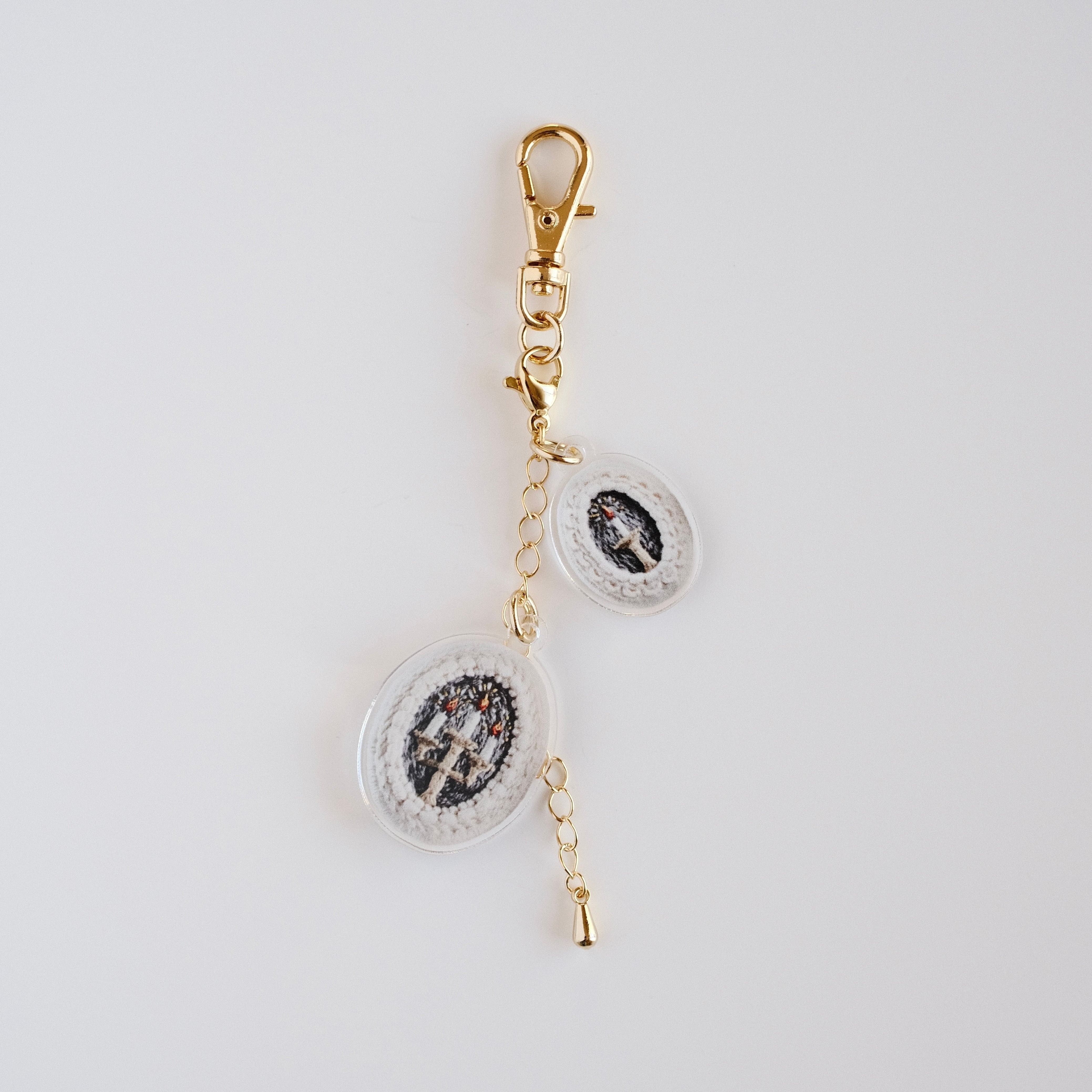 刺繍キャンドルのブローチをアクリルチャームにしました。