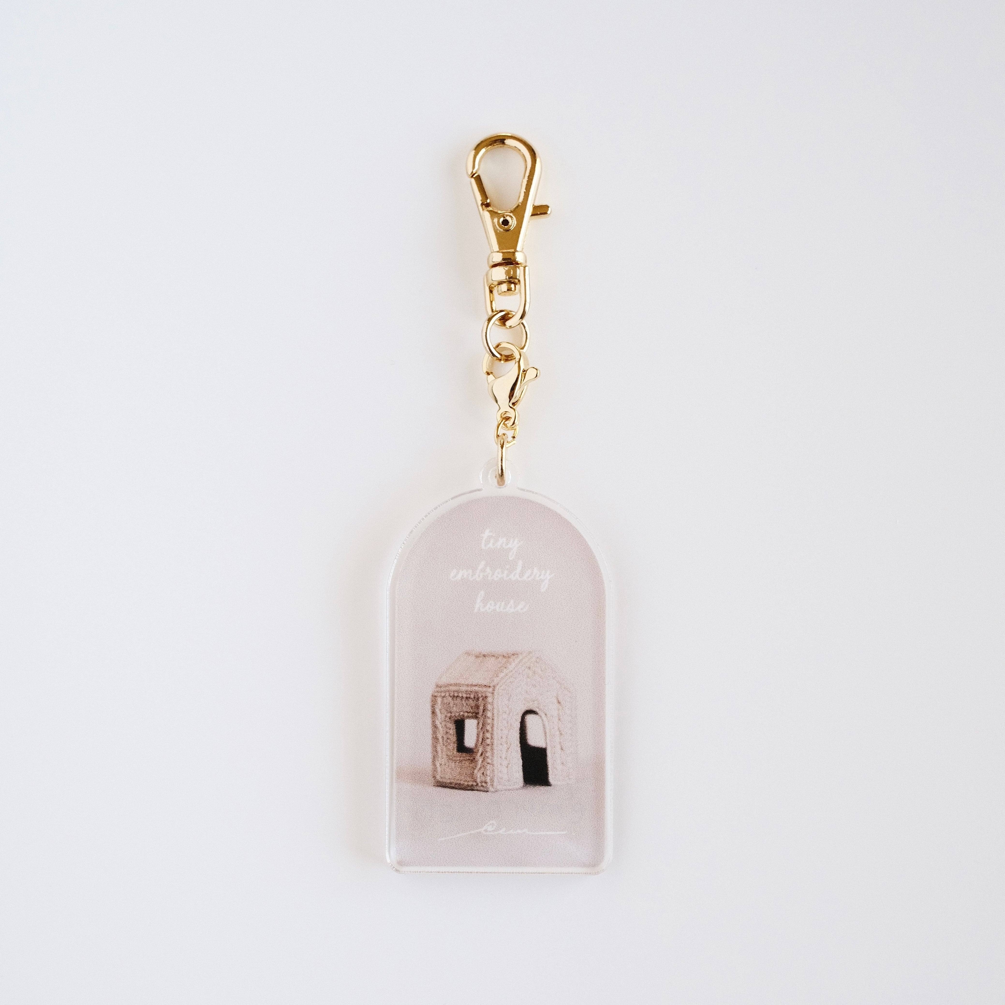 小さな刺繍の家のオブジェをアクリルチャームにしました。