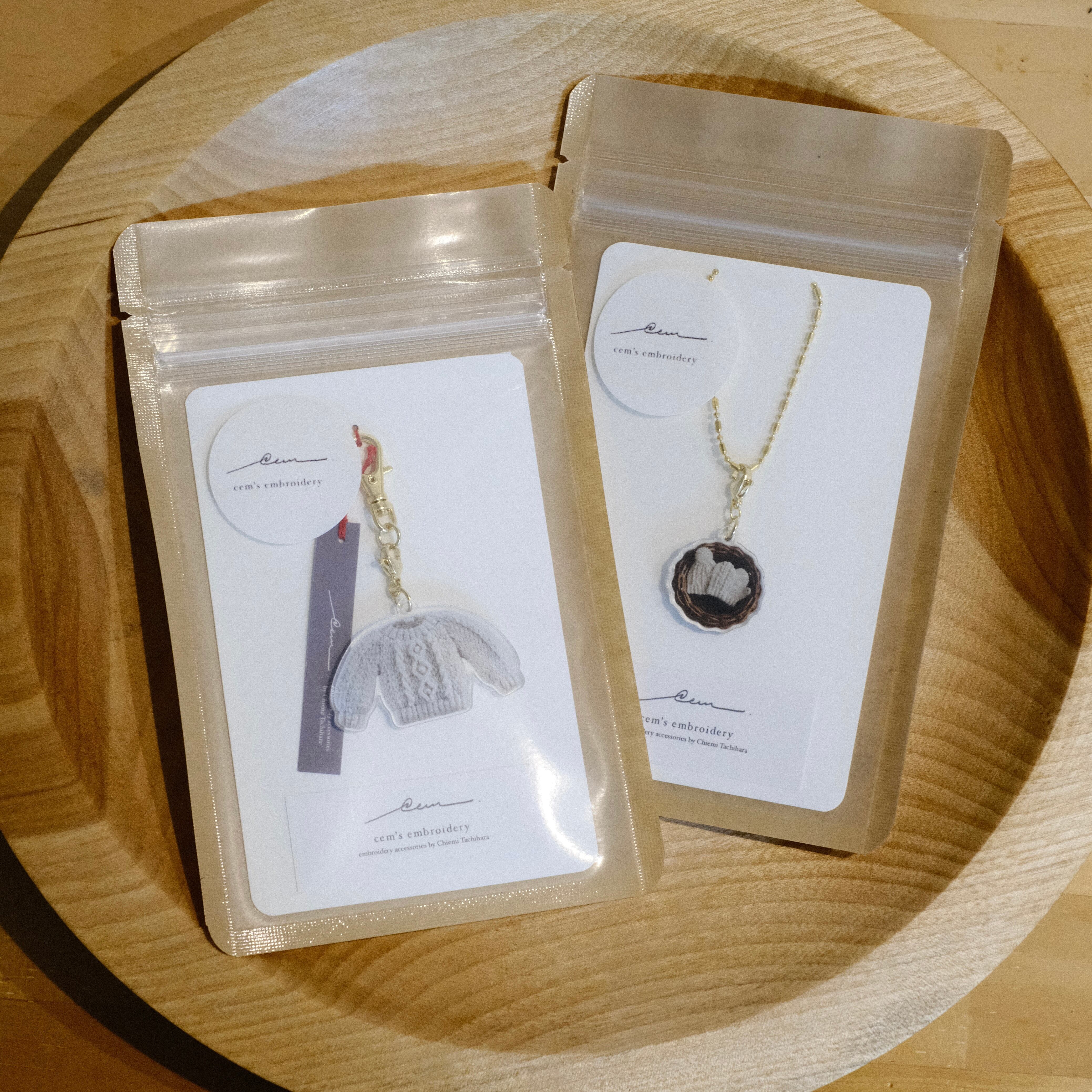 刺繍ニットブローチをアクリルチャームにしました。