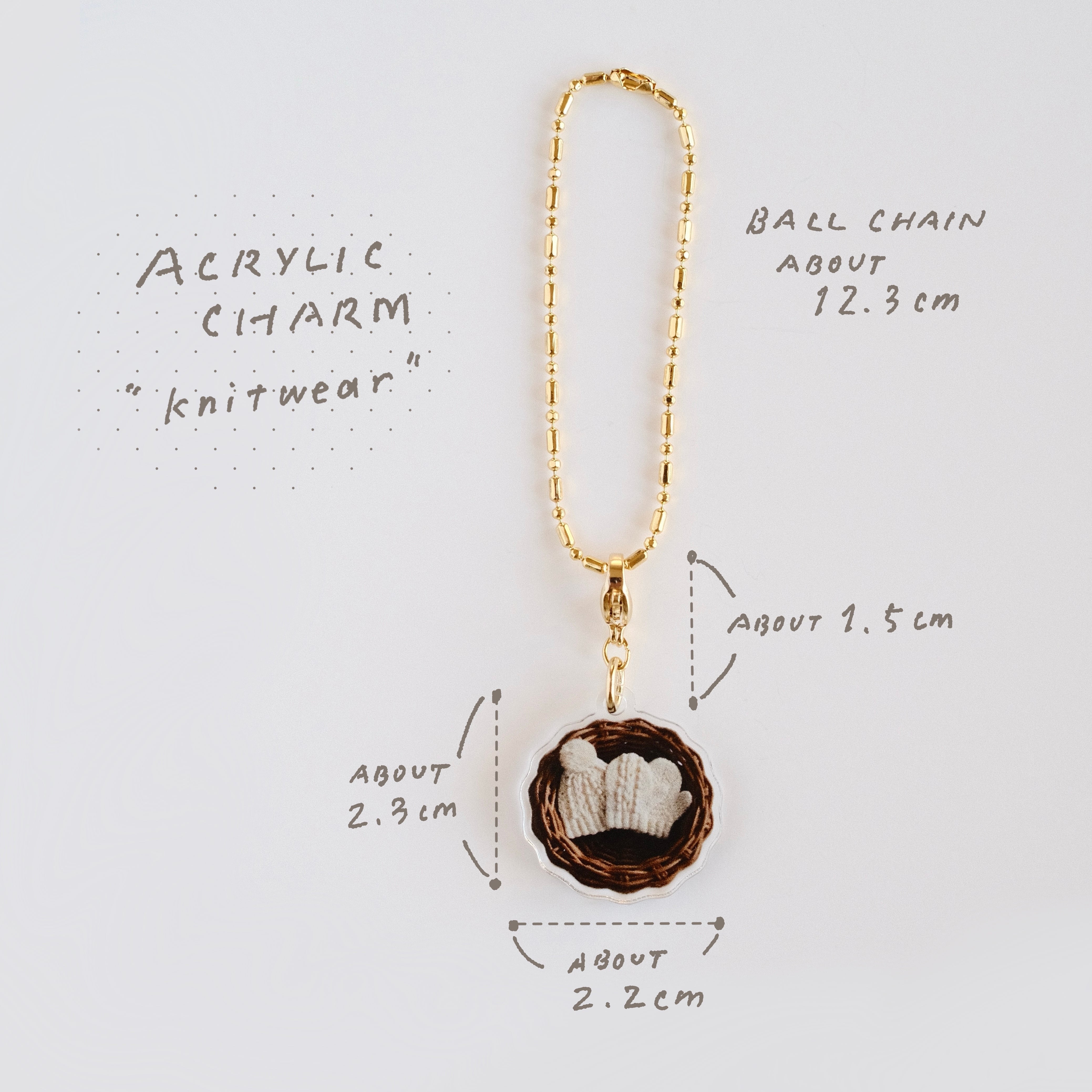 material:アクリル、チャーム金具、ボールチェーン