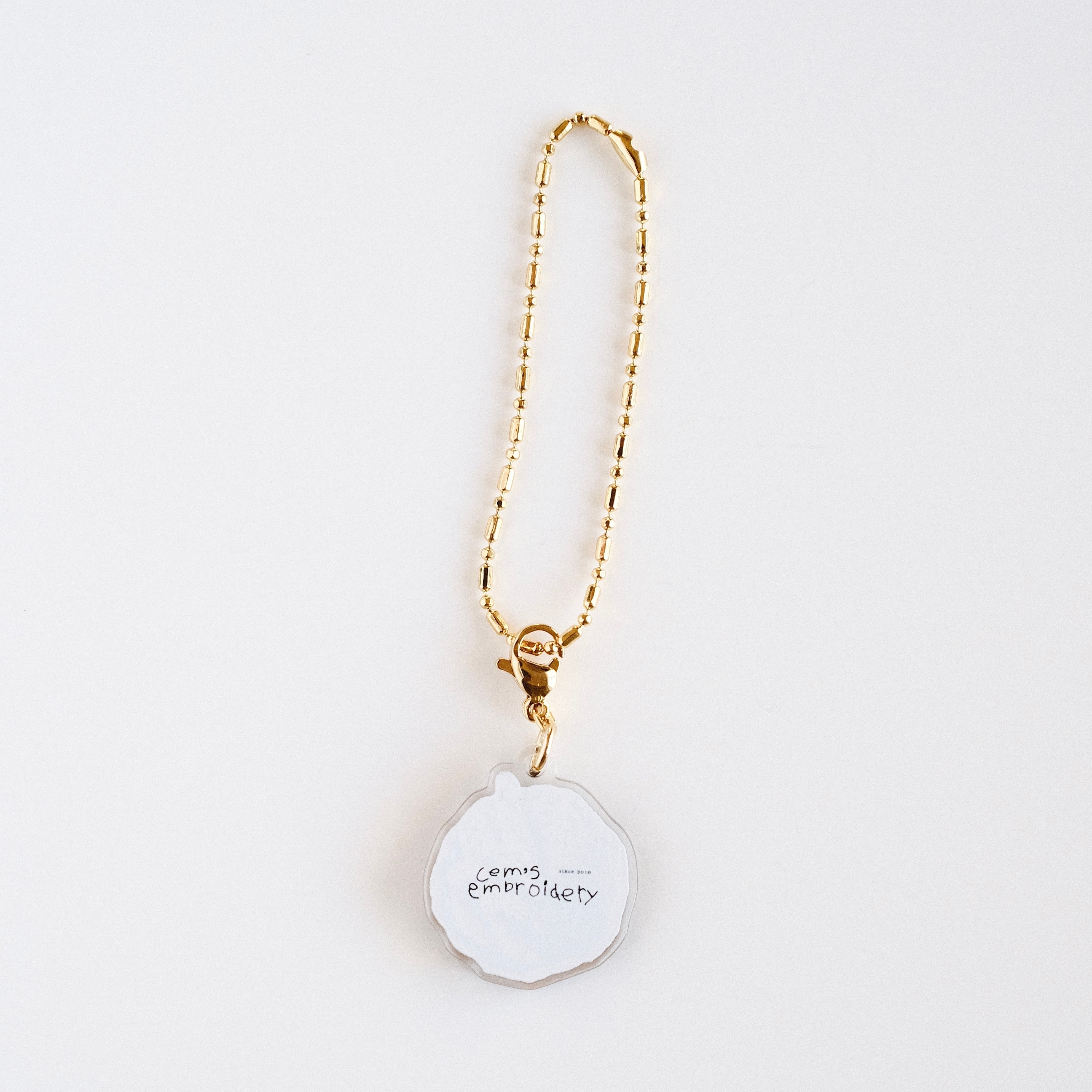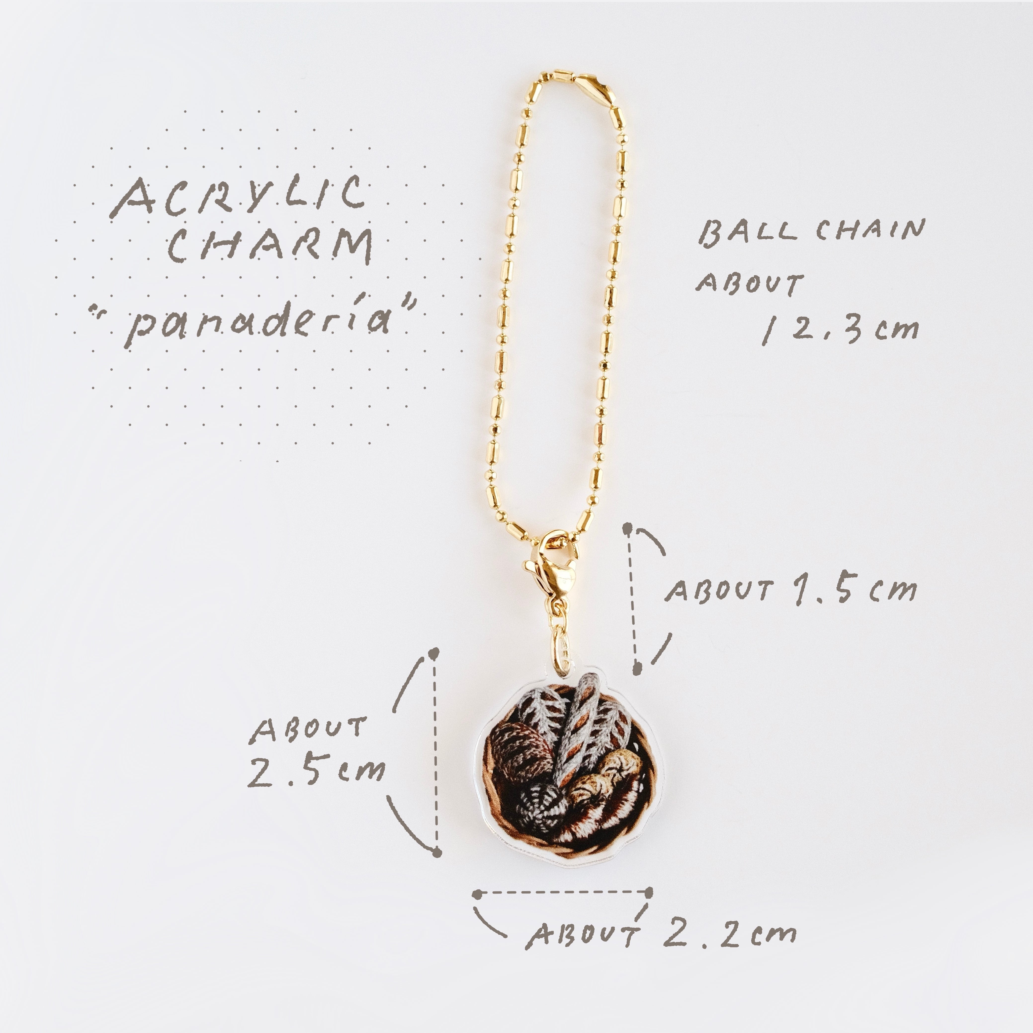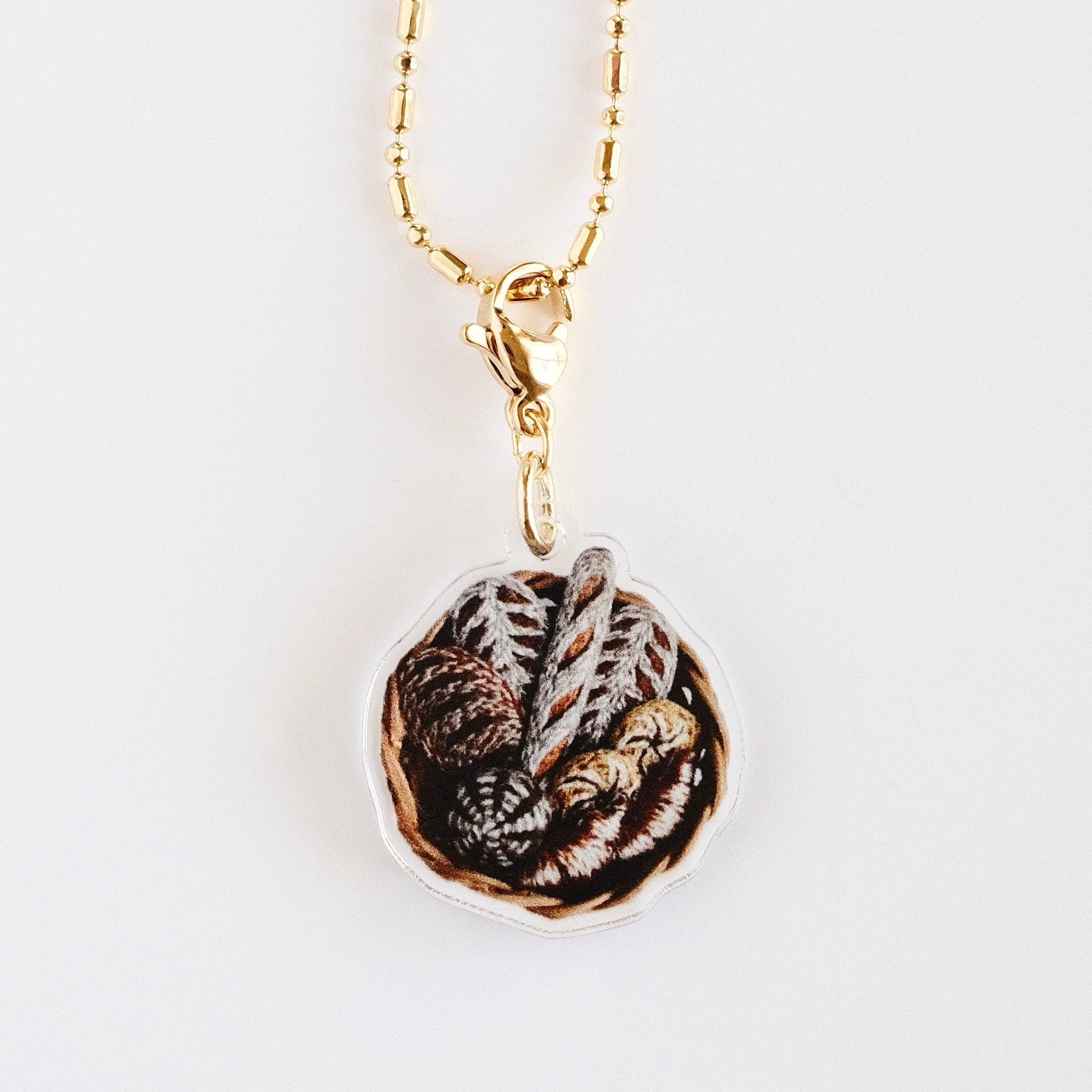 Our embroidered bread brooch has been turned into an acrylic charm, inspired by a cozy little bakery.